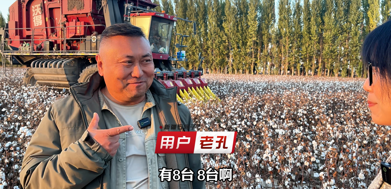 如今,沃得采棉机彻底改变了这一局面。“每台机器一年能采五、六千亩地,单台就能帮我们省50-60万!”老孔说这话时难掩惊喜,“以前哪敢想,国产机器能让我们省这么多真金白银。”