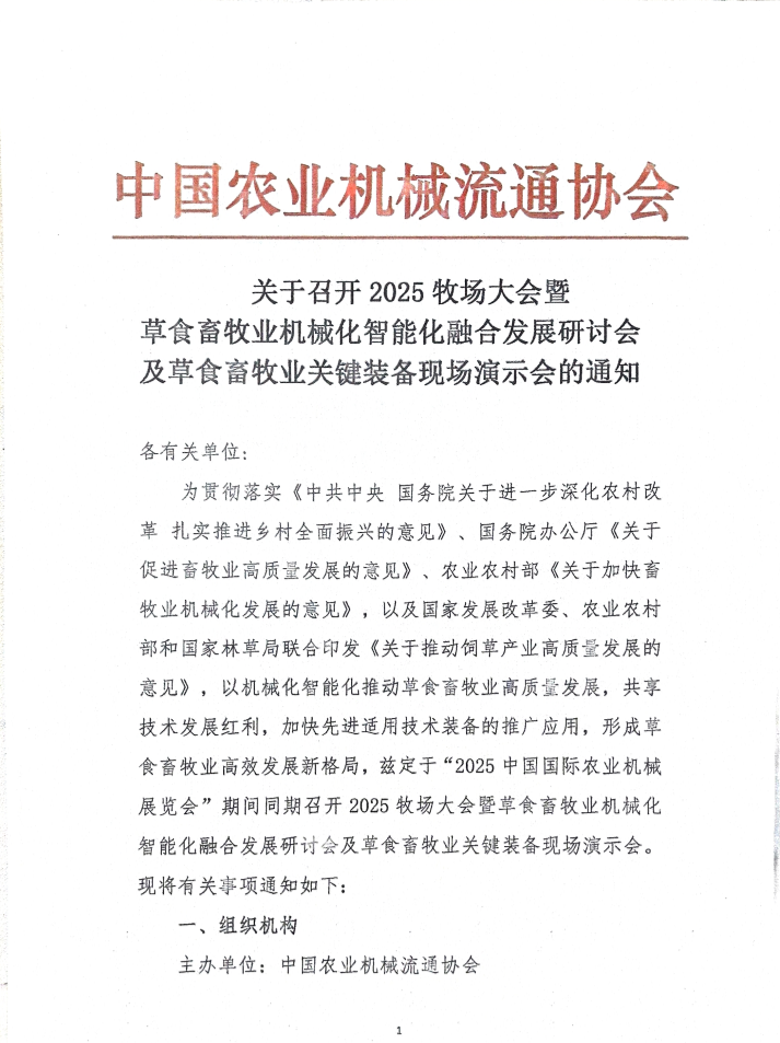 关于召开2025牧场大会暨草食畜牧业机械化智能化融合发展研讨会及草食畜牧业关键装备现场演示会的通知