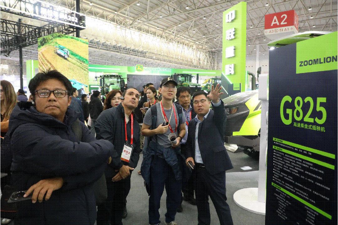 除此之外,PZ3004动力换挡大马力拖拉机、TF150大喂入量谷物联合收割机、PL80履带式谷物联合收割机、2ZQ-825智能水稻插秧机等“明星产品”的亮相也引发了广泛关注。众多海内外观众主动洽谈合作意向,现场交流氛围热烈非凡。