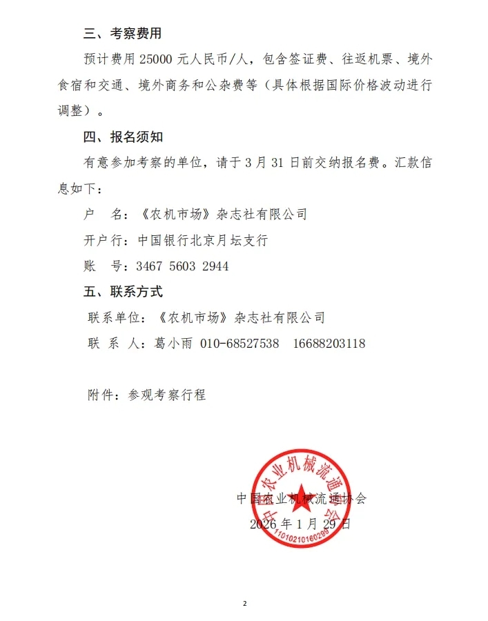 2026年01月30日 13:59:15 人气: 7858 来源: 中国农业机械流通协会