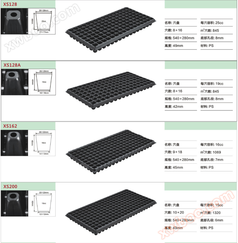该产品适用于水稻插秧机,使插苗苗整齐便捷。盘底纵横排列的凹窝设计,使盘底有蓄水保湿功能;四角大包边及包边内的多条加强筋的设计,增强盘硬度,使其更耐撞击和摔打,提高使用寿命;倒锥形的排水孔结合透水和保水功能,可使一定量的秧苗根系穿透。产品设计科学、工艺、柔韧性好、美观耐用。